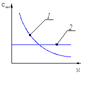 Например, с увеличением точности выполнения заготовки и приближением ее формы к форме готовой детали затраты на материал и на механическую обработку уменьшаются. Однако при этом повышаются затраты на оснастку для заготовительных процессов (изготовление штампов, пресс-форм и др.). На рис. показаны качественные зависимости себестоимости изготовления штампованной заготовки ступенчатого вала (кривая 1) и заготовки из проката (кривая 2) от программы выпуска деталей N. Очевидно, что при малой программе выпуска целесообразнее использовать заготовку из проката, так как в этом случае исключаются затраты на изготовление штампа. На рис. показаны качественные зависимости себестоимостей изготовления заготовки (кривая 1) и последующей механической обработки заготовки (кривая 2) от допуска на размеры заготовки. Суммарная кривая себестоимости изготовления детали 3 позволяет установить, что имеется рациональное значение допуска на размеры заготовки.