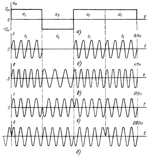 Управляя с помощью первичного сигнала параметрами гармонической несущей, можно получить следующие виды манипуляций: