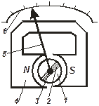 При протекании по рамке электрического тока I на подвижную систему действует магнитоэлектрический момент