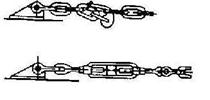 Якорная цепь служит для крепления якоря к корпусу судна. Она состоит из звеньев (рис. 6.5), образующих смычки, соединенные одна с другой при помощи специальных разъемных звеньев. Смычки образуют якорную цепь длиной от 50 до 300 м. В зависимости от расположения смычек в якорной цепи различают якорную (крепящуюся к якорю), промежуточные и коренную смычки (крепящуюся к корпусу судна). Длины якорной и коренной смычек не регламентируются, а длина промежуточной смычки, имеющей нечетное число звеньев, составляет 25–27,5м. Крепят якорь к якорной цепи при помощи якорной скобы. Чтобы предупредить скручивание цепи, в якорную и коренную смычки включают поворотные звенья – вертлюги.