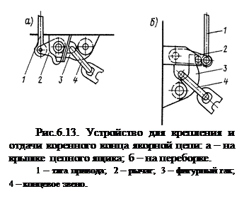 - механизмы крепления и дистанционной отдачи якорной цепи, обеспечивающие крепление коренного конца якорной цепи и быструю его отдачу в случае необходимости.