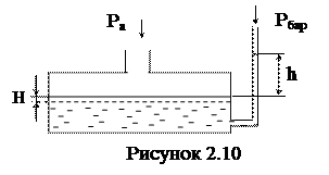 Чашечный (однотрубный) манометр является разновидностью U-образного трубного манометра (см. рис. 2.10), у которого одна из трубок заменена сосудом большого диаметра (чашкой). Измеряется давление Ра, действующее на жидкость в широком сосуде, а открытый конец трубки совмещен с атмосферой.
