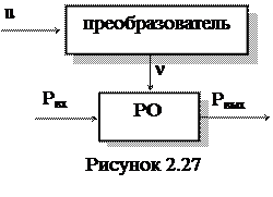 Преобразователь в ИУ данного типа осуществляет изменение электромагнитного поля в РО в зависимости от u, которое в свою очередь влияет на ν. При этом расход F на РО изменяется пропорционально.