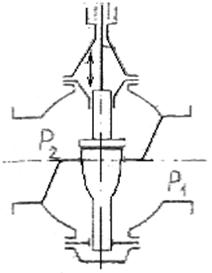 1) Плунжерные – расход регулируется путем изменения площади проходного сечения, образованного парой «седло-затвор» (см. рисунок 2.29). Форма затвора подбирается таким образом, чтобы пропускная характеристика F = F(h) была линейна (h – положение штока).