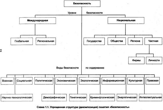 Упрощенная структура понятия «безопасность» приведена на схеме 1.