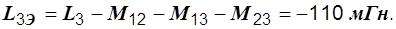 Знак минус перед последней индуктивностью говорит о том, что для физической реализации эквивалентной схемы в третью ветвь необходимо включить не катушку, а конденсатор, емкостное сопротивление которого равно индуктивному сопротивлению эквивалентной третьей ветви.
