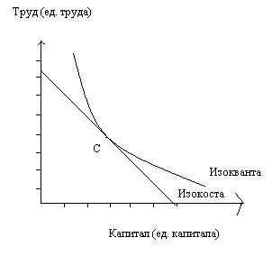 Комбинация в точке С является самой предпочтительной – (изокоста касается изокванты).