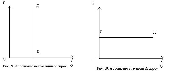 Спрос эластичен, когда величина спроса изменяется на больший процент, чем цена. (Е>1) Спрос нейтрален, когда процентное изменение величины спроса эквивалентно процентному изменению цены товара (Е=1). Спрос абсолютно неэластичен, когда вне зависимости от цены величина спроса не изменяется. Абсолютно эластичный спрос означает, что при падении цены ниже определенного уровня нет предела процессу реализации товара.