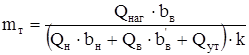 Qнаг - объемный расход нагнетаемой воды при стандартных условиях (например, м3/г); bв - объемный коэффициент нагнетаемой воды, учитывающий увеличение объема воды при нагревании до пластовой температуры и уменьшение ее объема при сжатии до пластового давления (для обычных пластовых температур и давлений bв = 1,01); Qн - объемная добыча нефти (суммарный дебит) при стандартных условиях (дебит товарной нефти); bн - объемный коэффициент нефти, учитывающий ее расширение за счет растворения газа, повышения температуры и незначительное сжатие от давления. (Для каждого конкретного пласта bн определяется экспериментально на установках pVT или приближенно рассчитывается по статистическим формулам. Обычно bн = 1,05 - 1,30, но иногда достигает величины 2,5 для нефтей грозненских месторождений верхнего мела); Qв - объемная добыча извлекаемой из пласта воды, измеренная при стандартных условиях; bв' - объемный коэффициент извлекаемой минерализованной воды, который может отличаться от объемного коэффициента для пресной воды; Qут - объемный расход воды, уходящей во внешнюю область (утечки); k - коэффициент, учитывающий потери воды, при периодической работе нагнетательных скважин на самоизлив, при порывах водоводов и по другим технологическим причинам. Обычно коэффициент k = 1,1 - 1,15.