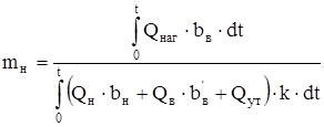 Числитель в (3.4) - суммарное количество закачанной в пласт воды от начала закачки до данного момента времени t. Знаменатель - суммарное количество отобранной из пласта нефти и воды, приведенное к пластовым условиям, а также суммарные утечки за время нагнетания в течение всей эксплуатации залежи, включая отбор жидкости разведочными скважинами. При этом, если mн < 1, текущее среднее пластовое давление меньше первоначального, так как закачка не скомпенсировала суммарный отбор. Если mн = 1. среднее пластовое давление восстанавливается до начального пластового давления, так как закачка полностью компенсирует суммарный отбор жидкостей.