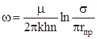 Здесь μ - вязкость воды; k - проницаемость; h - толщина пласта; n - число скважин в ряду; σ - половина расстояния между нагнетательными скважинами; rпр - приведенный радиус нагнетательной скважины.
