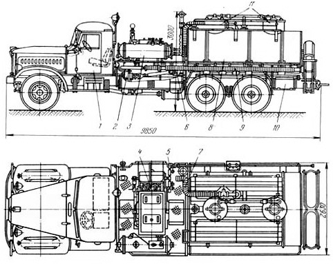 10 - ящик для инструментов; 11 - горловина цистерны.