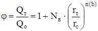 где j - кратность увеличения дебита после ГРП; Qт - дебит скважины после ГРП; Qo - дебит до ГРП при прочих равных условиях; Nв - коэффициент, зависящий от величины b = h/2rc; h - толщина пласта; rт - радиус трещины; rc - радиус скважины; n(b) - коэффициент, также зависящий от b (табл. 5.3).