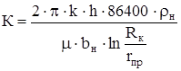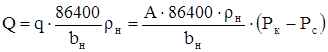 Учитывая усадку нефти, т. е. вводя объемный коэффициент b н, и плотность нефти при стандартных условиях ρн, а также переходя от секунд к суткам, можем формулу (6.5) переписать так: