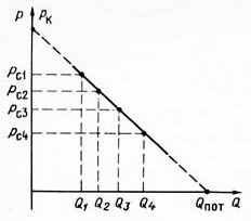 Рис. 6.1. Построение зависимости Q(Рc) по четырем фактическим точкам