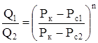 Из формул (6.1) и (6.2) видно, что дебит жидкости q зависит от депрессии Рк - Рс, которая является независимым аргументом. Группу постоянных величин, входящих в эти формулы, можно обозначить А. Таким образом,
