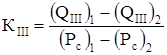 Здесь QI, QII, QIII, Pc - дебиты и забойные давления, I, II и III пластов соответственно. Индексы 1 и 2 означают первый и второй режимы. В случае поглощения жидкости каким-либо пластом дебит при поглощении берется со знаком минус, а при вычислении коэффициента продуктивности в числителе дроби берется алгебраическая разность дебитов.