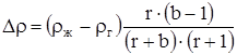 При b = 1 (отсутствие скольжения газа Сг = Сж) числитель в (7.32) обращается в нуль и Δρ = 0. Утяжеление ГЖС не происходит. С увеличением b (b > 1) Δρ монотонно увеличивается (рис. 7.9). Заштрихованная часть графика показывает увеличение плотности ГЖС за счет скольжения газа.