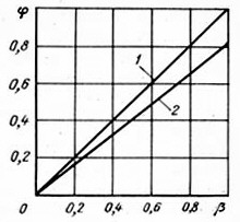 На диаграмме φ(β) линия 2 проходит ниже диагонали. Чем больше скольжение, т. е. чем больше а, а следовательно, и b, тем ниже пройдет линия φ(β).
