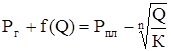 Левая часть равенства зависит от Q, так как Ртр и Ру зависят от расхода. С увеличением расхода трение и противодавление возрастают, тогда как Рг не зависит от Q. Введем в левую часть (8.14) некоторую функцию от Q. Тогда