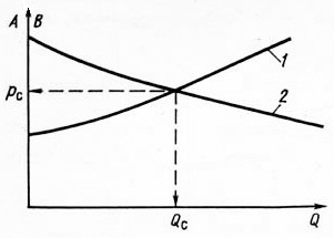 Далее строятся два графика А(Q) и В(Q). С увеличением Q величина А должна возрастать, а величина В уменьшаться, как показано на рис. 8.1.