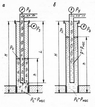 а - при давлении на забое меньше давления насыщения (Рс < Рнас);