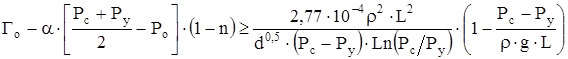 Из неравенства (8.37) можно определить минимально необходимое давление на забое Рс, обеспечивающее фонтанирование при заданной комбинации других величин, таких как Го, d, L, Ру, Р. Для определения минимального Рс необходимо решить неравенство (8.37) относительно Рс. Однако сделать это нельзя, так как выражение (8.37) относительно Рс трансцендентно. Поэтому решение неравенства (8.37) получается либо подбором такой величины Рс, которая обращает неравенство (8.37) в тождество, либо графоаналитическим путем.