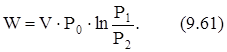 Знание рабочих давлений на устье скважины позволит определить удельную энергию на подъем жидкости для сравнительной оценки возможных режимов скважины с энергетической точки зрения, если предположить изотермическое расширение газа в НКТ, а энергию газа, выделяющегося дополнительно из жидкости, не учитывать, так как она относится к естественной пластовой энергии. В таком случае удельную энергию, отнесенную к 1 м3 жидкости, можно определить по формуле для изотермического процесса