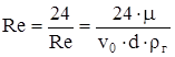При малых Rе (Rе < 500) коэффициент сопротивления среды можно выразить из закона Стокса: