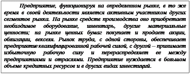 Предприятие как субъект и объект рынка имеет свой экономический механизм функционирования, ему будет посвящена отдельная тема данного курса.