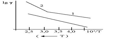 Излом кривойlgγ(1/T) м.б. также из-за различных энергий диссоциации основного вещества.