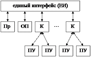 Современные ЭВМ – модульный принцип организации, т. е. ЭВМ из набора блоков: Процессор, Оперативная Память, Периферийные Устройства и др.