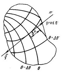 - единичный вектор, нормальный к изотермической поверхности и направленный в сторону возрастания температуры.