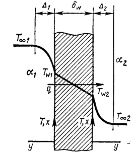 Q = α·(t'ст - t'ж)·F, или q = α·(t'ст - t'ж), где: α - коэффициент теплоотдачи [Вт/(м2К)], характеризует интенсивность теплообмена между поверхностью тела и окружающей средой.