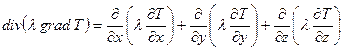 - дивергенция (расхождение) теплового потока в окрестности выделенного элементарного объема. Подставляя значение имеем: