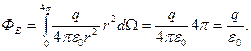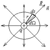 Окружим точечный заряд q замкнутой сферической поверхностью радиуса r ивычислим поток электрического поля точечного заряда через эту поверхность.