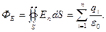 Если внутри замкнутой поверхности имеется несколько зарядов, то поток их результирующего поля, согласно принципу суперпозиции, будет равен: