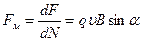 где n = dN/dV – концентрация зарядов, dN – число зарядов в элементе объема dV = Sdl. Тогда, сила, действующая в магнитном поле на один заряд, будет: