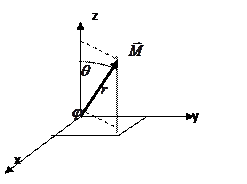 Сферические координаты точки M, изображенные на рис. 16, имеют следующий смысл: