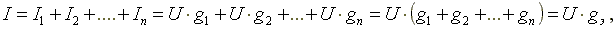 Эквивалентная проводимость электрической цепи, состоящей из n параллельно включенных элементов, равна сумме проводимостей параллельно включенных элементов.