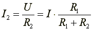 Возьмем схему, состоящую из двух параллельно включенных сопротивлений (рис. 2.3). Известны величины сопротивлений и ток в неразветвленной части схемы. Необходимо определить токи в параллельных ветвях.