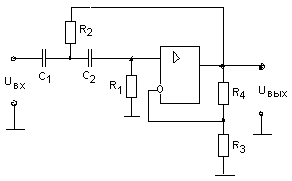 Г) рабочий диапазон частот неограничен максимальной рабочей частотой ОУ.