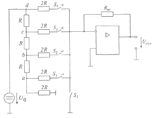 Г) Схема четырехразрядного ЦАП с матрицей R—11R