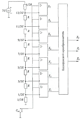 38) Схема АЦП с каким преобразованием на компараторах изображена на рисунке: