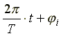 называют фазой; величину φ, равную фазе в момент времени t = 0, называют начальной фазой. Фаза измеряется в радианах или градусах. Величину, обратную периоду, называют частотой. Частота f измеряется в герцах.