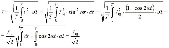 Действующим значением переменного тока называется среднеквадратичное значение тока за период. Действующее значение тока (для синусоиды