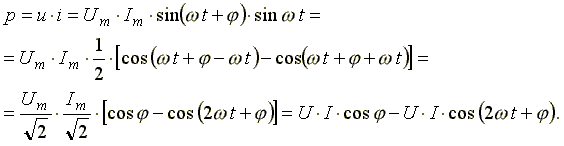 - мгновенная мощность в реактивном элементе (в индуктивности или в емкости).