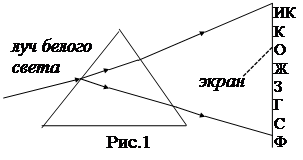 Наиболее отчетливо дисперсия света проявляется при прохождении белого света через призму. За призмой лучи белого света окажутся разложенными на составляющие цвета – в спектр. Полученный спектр называют призматическим, в отличии от дифракционного спектра, даваемого дифракционной решеткой.