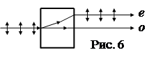 В большинстве кристаллов наблюдается двойное лучепреломление – падающий луч раздваивается в кристалле на два преломленных луча. Один из лучей, который подчиняется закону преломления, называется обыкновенным, обозначается о. Другой луч не следует из закона преломления. Его называют необыкновенным лучом, обозначают е. Обыкновенный и необыкновенный лучи поляризованы во взаимно перпендикулярных плоскостях, они имеют различные скорости распространения и, следовательно, различные показатели преломления nо и nе. Двойное лучепреломление объясняется оптической анизотропией вещества.