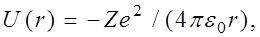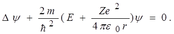 где r – расстояние между электроном и ядром, получим уравнение Шредингера в виде